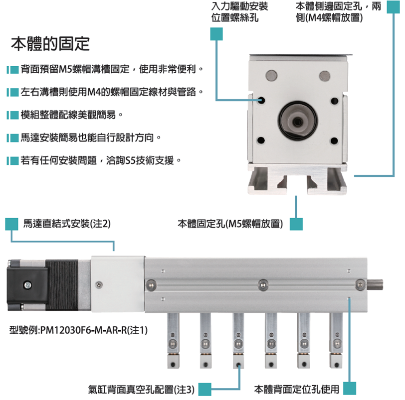 MHQ系列,應用於高精度『旋轉』與『直線』動作來使用,可選擇對應的高精度直線電動缸來搭配使用,或客戶也可自行搭配所需要的電動缸來使用, 並內建真空氣室,提昇客戶完整的使用方案與便利性。