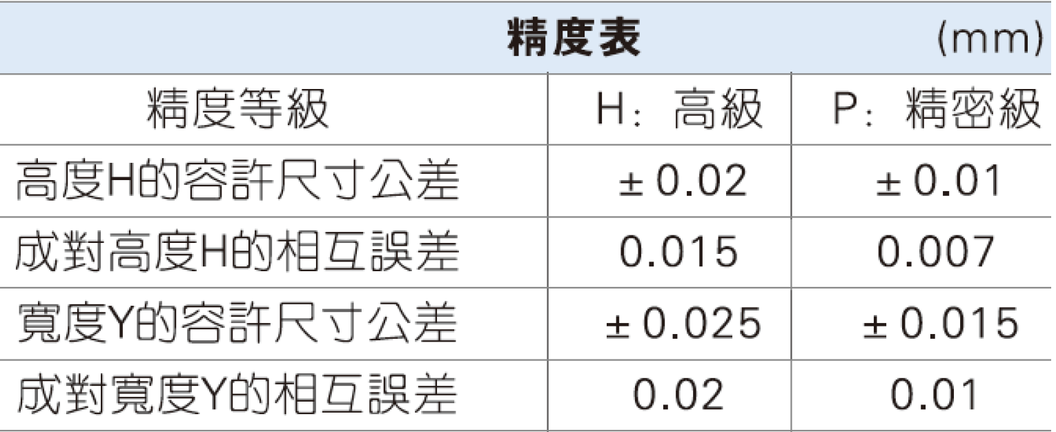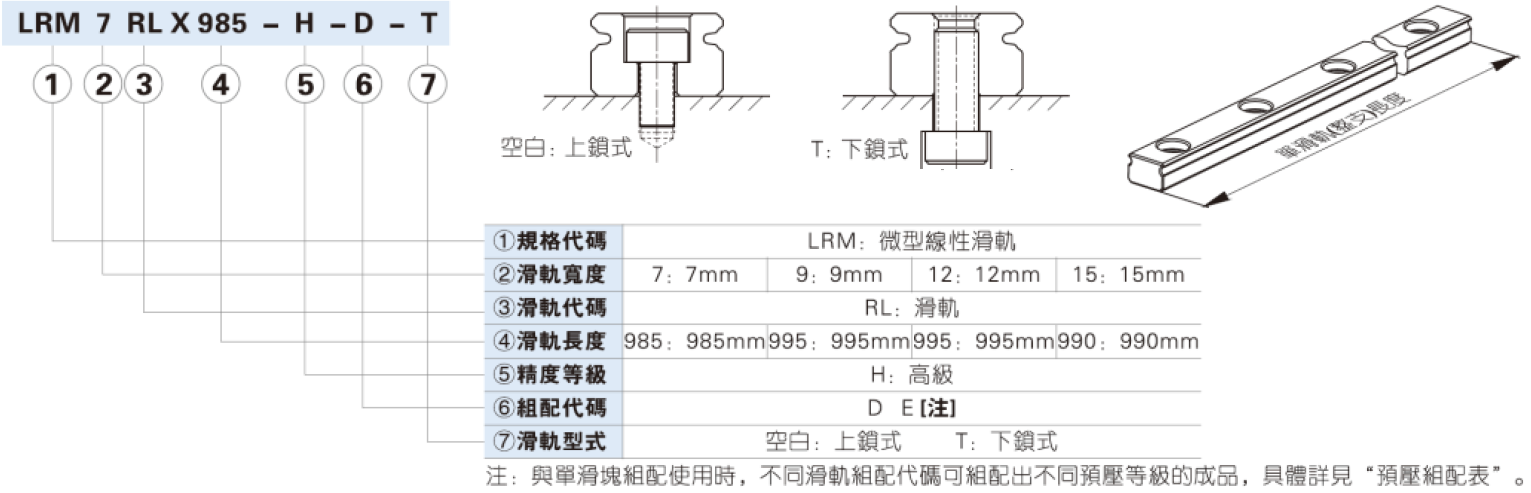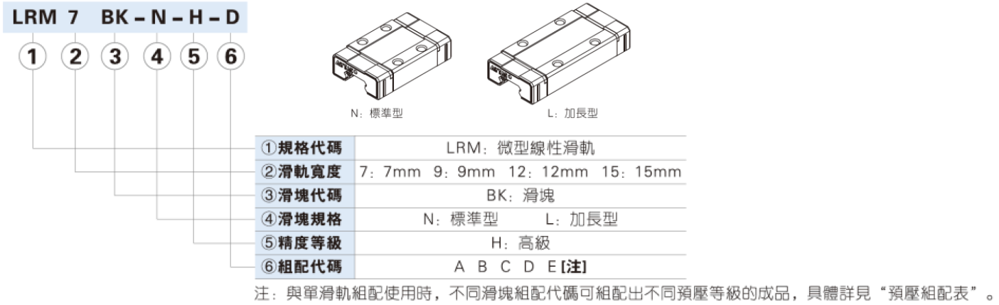 LRM系列微型線性滑軌提供高級(H)、精密級(P)共兩種精度等級供使用者選用